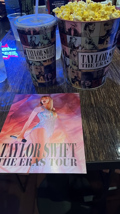 In the meantime, I wanted to share some photos of one fun activity from the past few weeks — the Taylor Swift Eras Tour in movies! I know…you probably got excited reading that until the movies part. 😉 Our group of friends got together for dinner in Japan Town + the Taylor Swift viewing. Our group is filled with Swifties, and we figured it was easier and much cheaper to get the T-Swift experience in theaters, and it did not disappoint! Also, watching a 3 hour concert while seated was *chef’s kiss.*