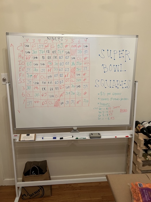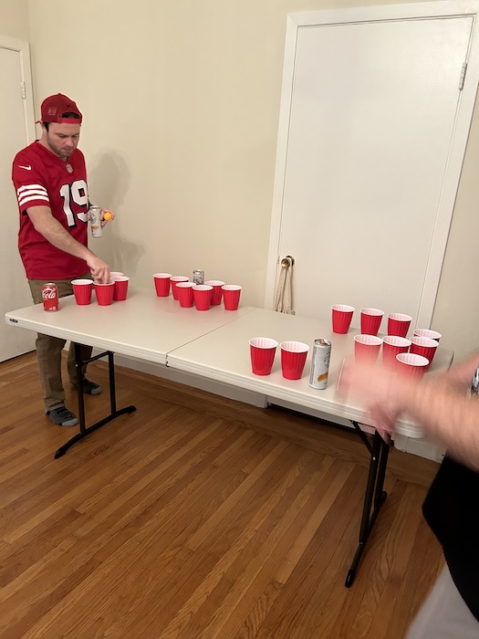 The party was a classic football-themed party with beer pong, Super Bowl Squares gambling, and plenty of white claws flowing around. This year was a big deal as San Francisco’s team, the 49ers, played in the Super Bowl! There was major pride around the city as everyone was so pumped to see our home team represent. The game was a tight one that went into overtime, but unfortunately, we lost.