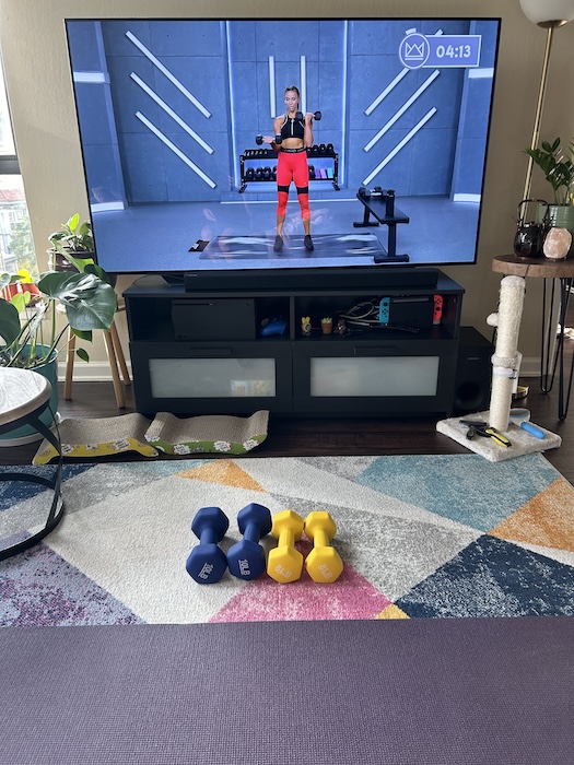 My simple living room gym. 🙂 I am such an at-home workout gal.
