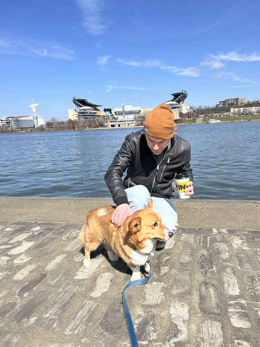 The next morning, Joe and I met up with Andrew and his dog (Constantine) for our morning activity: a walk around downtown Pittsburgh. This was Joe’s first time in Pittsburgh; I visited in 2020 but did not do much because of COVID so we figured we’d see the touristy sights first.