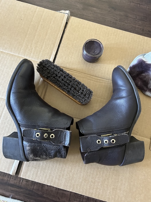During my hunt for new work shoes, I realized I could revive my current pair of leather boots by polishing them. And so, I looked up instructions and bought the tools for polishing shoes — one session later, they were as good as new! The one of the left is unpolished, and the one on the right is polished — you can really see the difference. I’m proud of myself for learning a new skill and also saving some money. 🙂