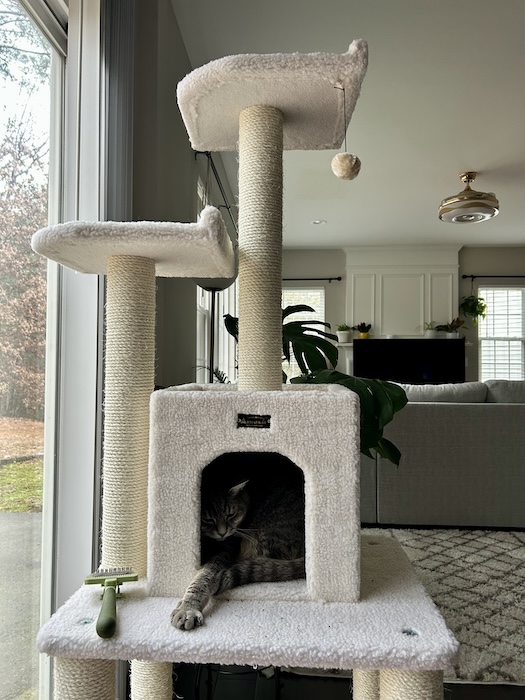 Lastly, I’m happy to report the cats love NC as much as we do. The moment we got here, I saw a new side of their personality I hadn’t seen before when we lived in apartments. They are more active and curious – the extra space has been really good for them. Ben claimed the cat tower the moment we set it up, something we didn’t have space for in our previous apartment.