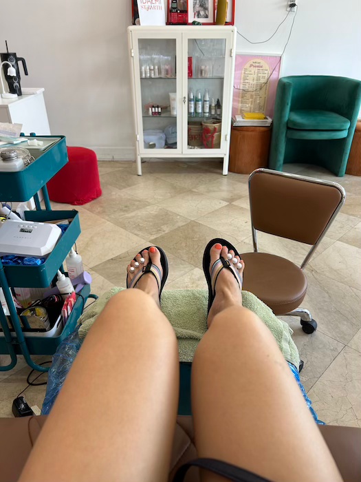 We got pedicures one day. I got a regular pedicure while Joe was in it for the massage chairs that you sit on at nail salons. π