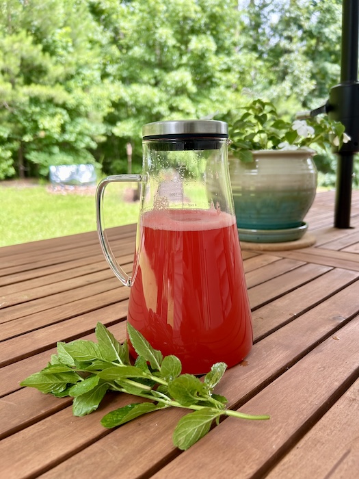 I’ve been collecting fresh mint from our garden and making watermelon juice. I scoop half a watermelon into a blender, strain it, and muddle the mint leaves. It’s such a refreshing drink that’s always stocked in our fridge.