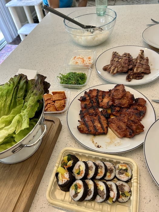 One evening, we grilled at home. We bought some marinated Korean meats from H-Mart, and we had a Korean barbecue meal. This was another favorite meal – every bite was incredible.
