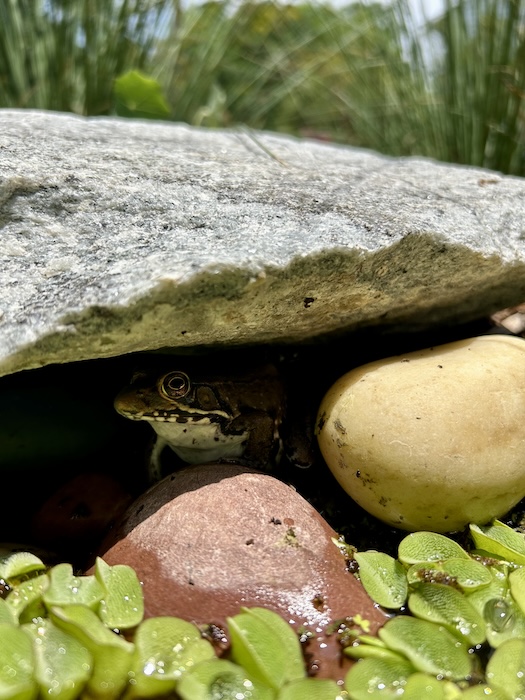 Lastly, our pet frog is thriving and growing! He’s pretty much always in the pond now as the new pond plants have made him more comfortable in camouflaging him. I’ve gotten quite attached to him and feel like I’m now the crazy frog lady. 😛